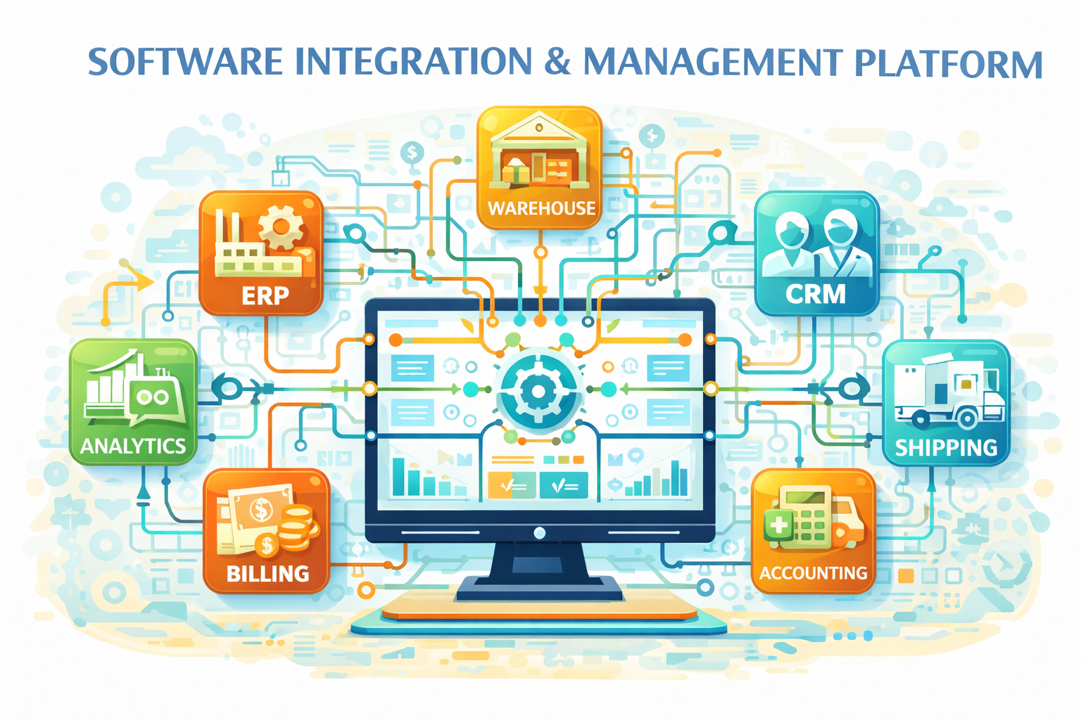 A centralized integration solution that connects ERP, warehouse, and billing systems, enabling seamless data flow, reducing manual processes, and improving operational efficiency.